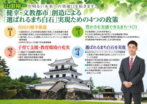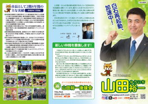 白石市民のみなさま。「やまゆうこうえんかい」に入会して、 私たち「やまゆうこうえんかい」は、 私たちは市民の声が集まる場として活動してきましたし、 より多くの市民の皆さまと山田裕一が一体となって、 |